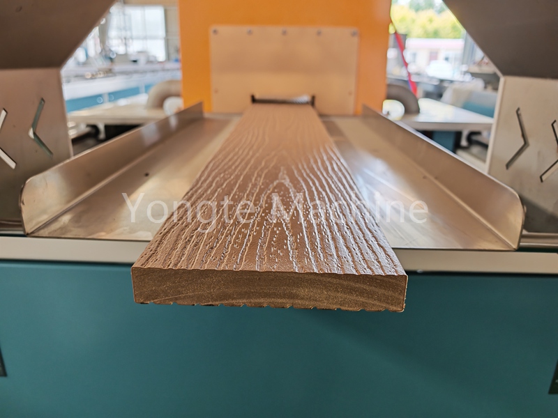 5.Онлайн-оборудование для 3D-тиснения: чтобы улучшить эстетику древесины и противоскользящие свойства древесно-пластикового композита, мы интегрировали онлайн-машину для глубокого 3D-тиснения. Это оборудование можно прикрепить к калибровочному столу экструзионной линии ДПК для получения более реалистичного эффекта текстуры древесины. Ролик для тиснения является взаимозаменяемым, что позволяет создавать разнообразные текстуры древесины.