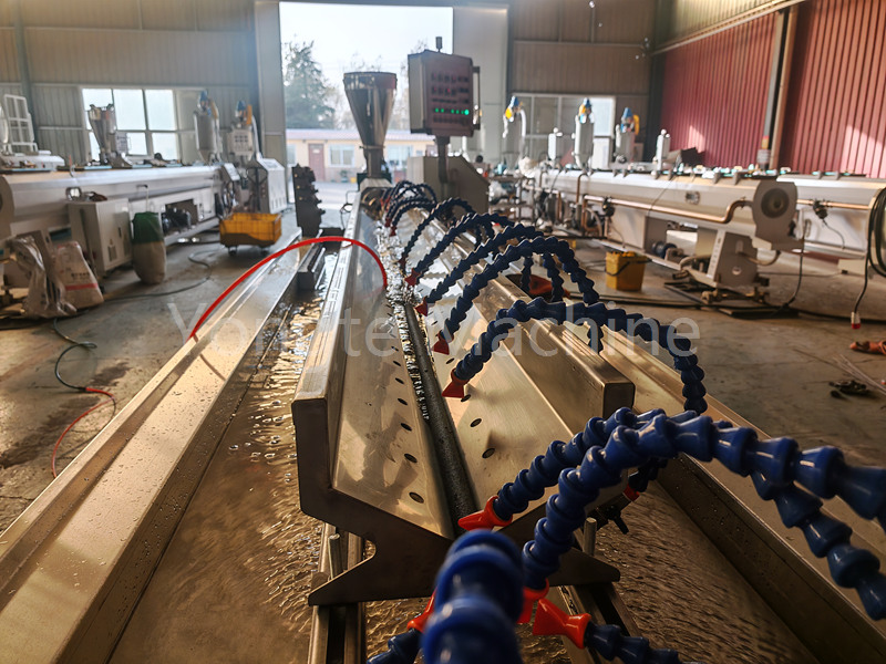 (2) этот 6-метровый резервуар для водяного охлаждения обеспечивает быстрое и равномерное охлаждение для стабилизации конструкции трубы и поддержания точности размеров после экструзии.