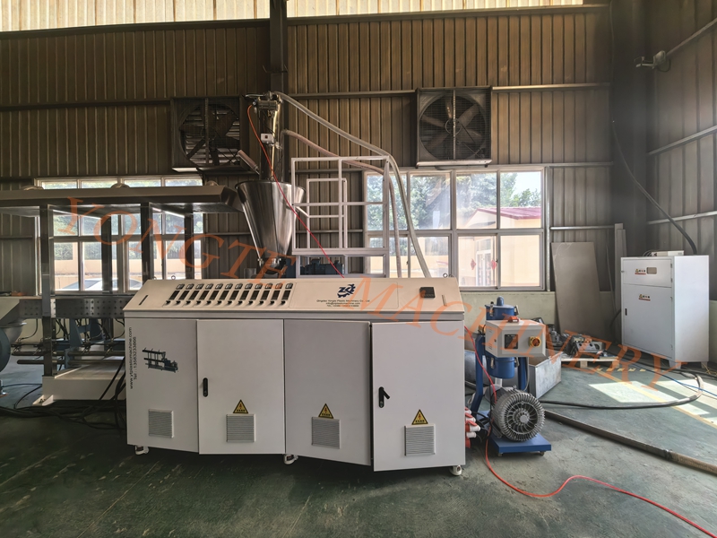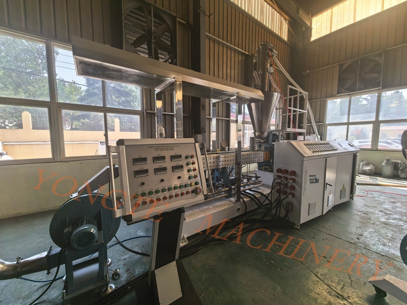 Qingdao Yongte Plastic Machinery's Wood Plastic Plateletizing Prodeletizing Production Line Успешно завершенная пробная работа