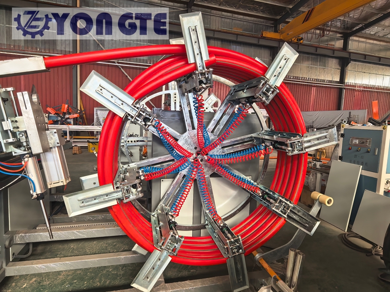 Намоточная машина собственной разработки компании Yongte Plastics Machinery решает проблему намотки полиэтиленовых труб большого диаметра.