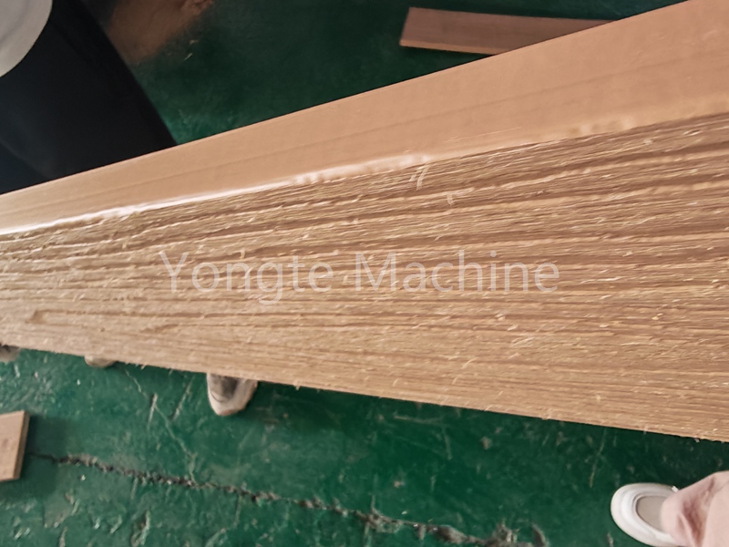 Специализированный шлифовально-щеточный станок Yongte, специально разработанный для изделий из древесно-пластиковых композитов, использует высокоскоростное шлифование с помощью абразивных лент, роликов DuPont и роликов из стальной проволоки. Это не только устраняет дефекты поверхности, но и создает шероховатую текстуру, напоминающую деревянную текстуру, устраняя пластиковый вид древесно-пластиковых изделий. Такая обработка поверхности завоевала популярность среди многих клиентов. Yongte может оборудовать различные станки для шлифовки и придания шероховатости в соответствии с конкретными древесно-пластиковыми изделиями и желаемым уровнем шероховатости, требуемым клиентом.