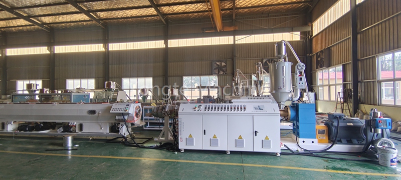 4. Охлаждение и формирование: после экструзии трубка отправляется в резервуар для охлаждения для пластификации и охлаждения, в то время как форма трубки формируется с использованием формирующей формы во время процесса охлаждения для достижения требуемого стандартного диаметра и требований к точности.
