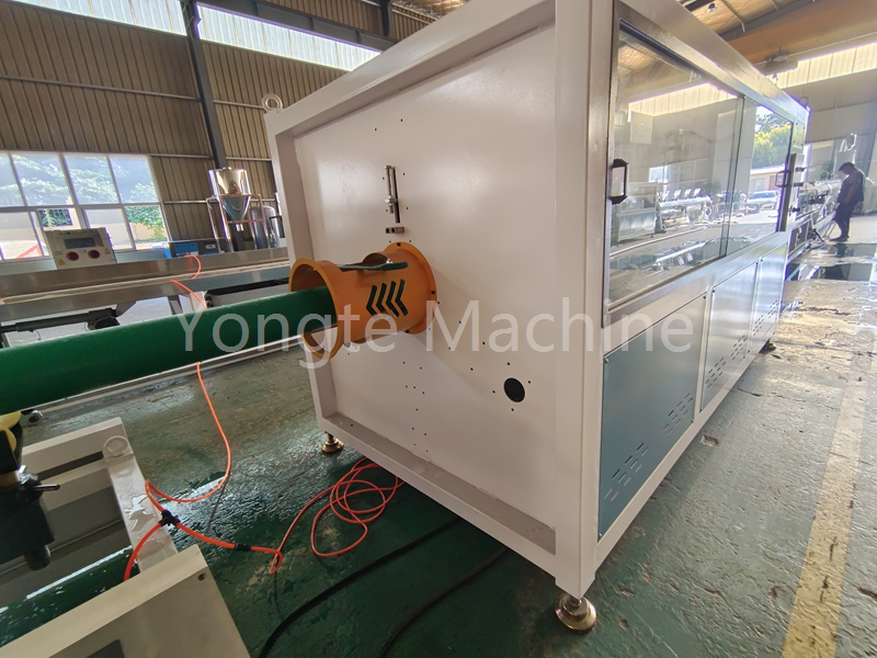 5. Тракция и резка: потяните трубку с помощью трактора, дайте трубке проходить в середине формы, и нарежьте трубку радиально режущей машиной и автоматически исправляет длину и автоматически подает материал.
