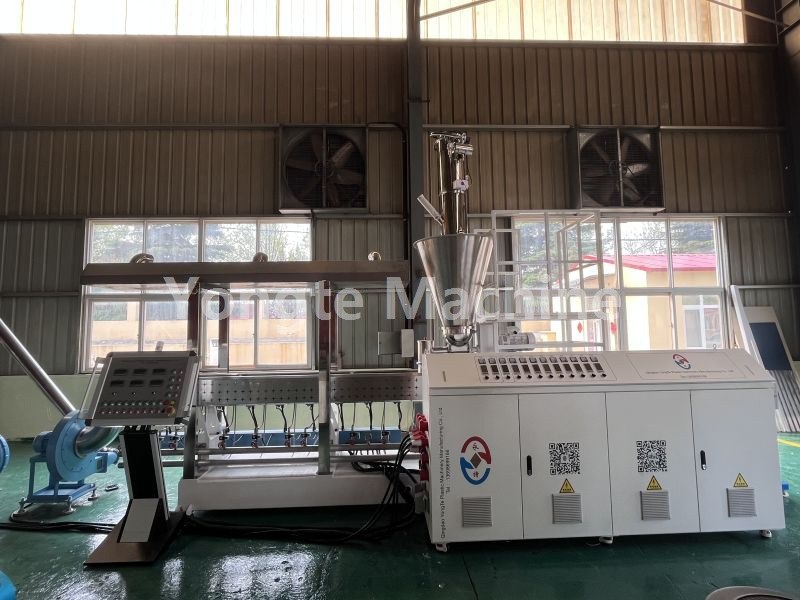 Машина для производства гранул Yongte WPC состоит из системы подачи, системы параллельной двухшнековой экструзии, системы горячего гранулирования, системы обдувочного охлаждения и системы хранения материала.